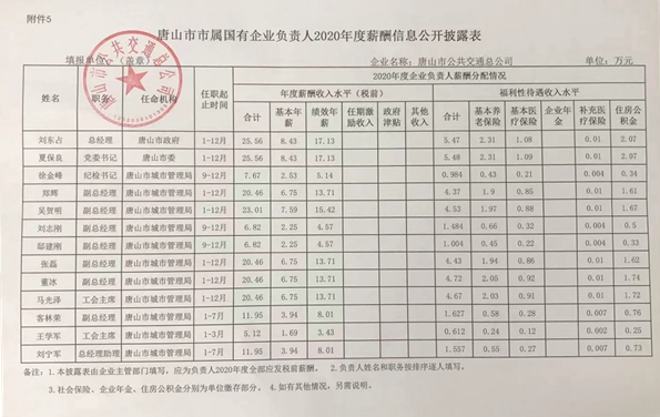 唐山市市屬國有企業(yè)負責人2020年度薪酬信息