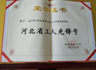2023年4月28日,河北省總工會授予唐山公交總公司46路駕駛員翟澤明河北省五一勞動獎?wù)?,授予唐山公交總公?span style="padding:0px">2路營運車隊河北省工人先鋒號。