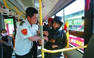 江偉剛走上車,一位乘客趕忙起身上前幫著一起攙扶他。有的市民建議,讓他坐在中間不用上臺階的座位上,更舒服、方便。而靠近中間座位的市民則自覺起身,為老人讓座。將老人安頓好后,馮達(dá)坐在駕駛座上起步開車,雖然這一過程時間較長,但車廂里并沒有抱怨的聲音。