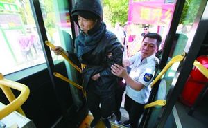 夫妻倆看到當(dāng)時值班司機馮達(dá),感激一笑。趙淑榮攙扶起輪椅上的丈夫,這時有一雙手給了她有力的支撐。原來,司機馮達(dá)在看到夫妻倆時,早已來到趙淑榮身邊,幫著她一起把江偉扶上公交車。一邊扶著老人,馮達(dá)一邊提醒車上的市民,“麻煩哪位好心人給這位老人讓個座,謝謝大家了。”