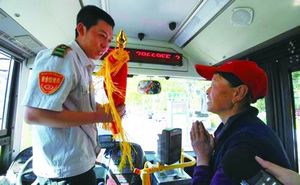 5月5日,趙淑榮來到文化路旁的28路公交車站點,親手將錦旗送給了車上的司機。三年多來,28路公交車司機風(fēng)雨無阻,幫助趙淑榮攙扶她患有腦梗后遺癥的老伴上車、下車,安全地送他們到達(dá)目的地。“沒有他們幫助,我和丈夫真沒法出門,真的太感謝這些好心人了。”趙淑榮感激地說。