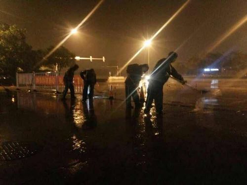 23時(shí)43分,很多人已進(jìn)入了夢(mèng)鄉(xiāng),此時(shí)公交場(chǎng)站的工作人員正在清理加油站積水,凌晨雨勢(shì)漸弱他們才放心收隊(duì)。