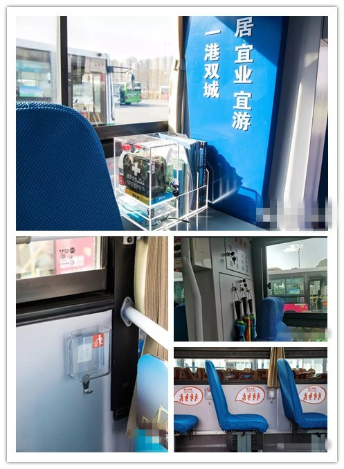 “一港雙城”示范車廂內設置了服務小棧,內有急救包、飲用水、手機充電寶、老花鏡、雨傘、唐山旅游宣傳圖冊等方便乘客隨時使用。在每個靠窗的座椅處,還設置了小型的垃圾收納盒和置物掛鉤。此外,駕駛員學習強國信息小播報,在平峰期首末站時,為乘客播報一些當前的事實信息,豐富乘客乘車體驗。