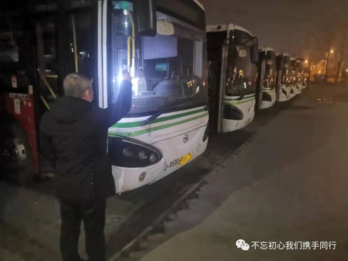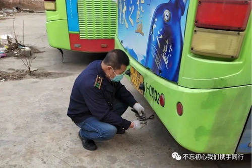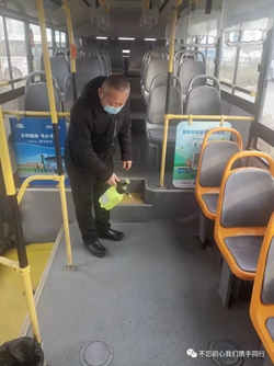 3月22日一大早,伴隨著“轟轟”的發(fā)動(dòng)機(jī)聲,118路司機(jī)竇玉海將韓城李莊子車場(chǎng)內(nèi)停駛的30部公交車一一“喚醒”。“車輛長(zhǎng)期停駛,電瓶容易虧電,會(huì)導(dǎo)致車輛打不著火,所以隔幾天就要啟動(dòng)一次。”啟動(dòng)完車輛后,竇玉海又馬不停蹄地對(duì)車輛技術(shù)狀況、車載安全設(shè)施正常使用情況進(jìn)行了認(rèn)認(rèn)真真的逐車檢查。一通忙碌下來將近三個(gè)小時(shí),此時(shí)他又踱步在場(chǎng)區(qū)的角角落落開始了消殺工作。