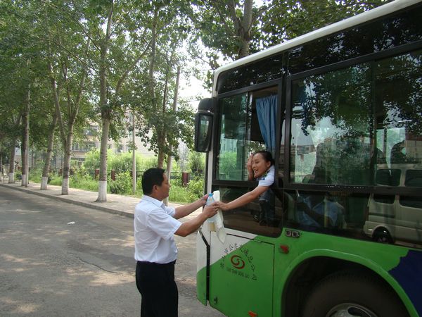 隨著伏天到來,我市進入一年中氣溫最高且潮濕悶熱的日子。這給公交的運營帶來嚴(yán)峻考驗。7月20日我市氣溫達到了35度以上,雖然是周日,豐潤分公司經(jīng)理劉福利帶領(lǐng)全體管理人員,攜帶冰鎮(zhèn)礦泉水和嶄新的毛巾分赴唐山北站、十一小區(qū)、北方購物、二十一小區(qū)等各大站點為途經(jīng)的一線公交駕駛員送上毛巾與礦泉水,并向他們說聲“辛苦了”,叮囑駕駛員注意自身防暑的同時要確保行車安全。